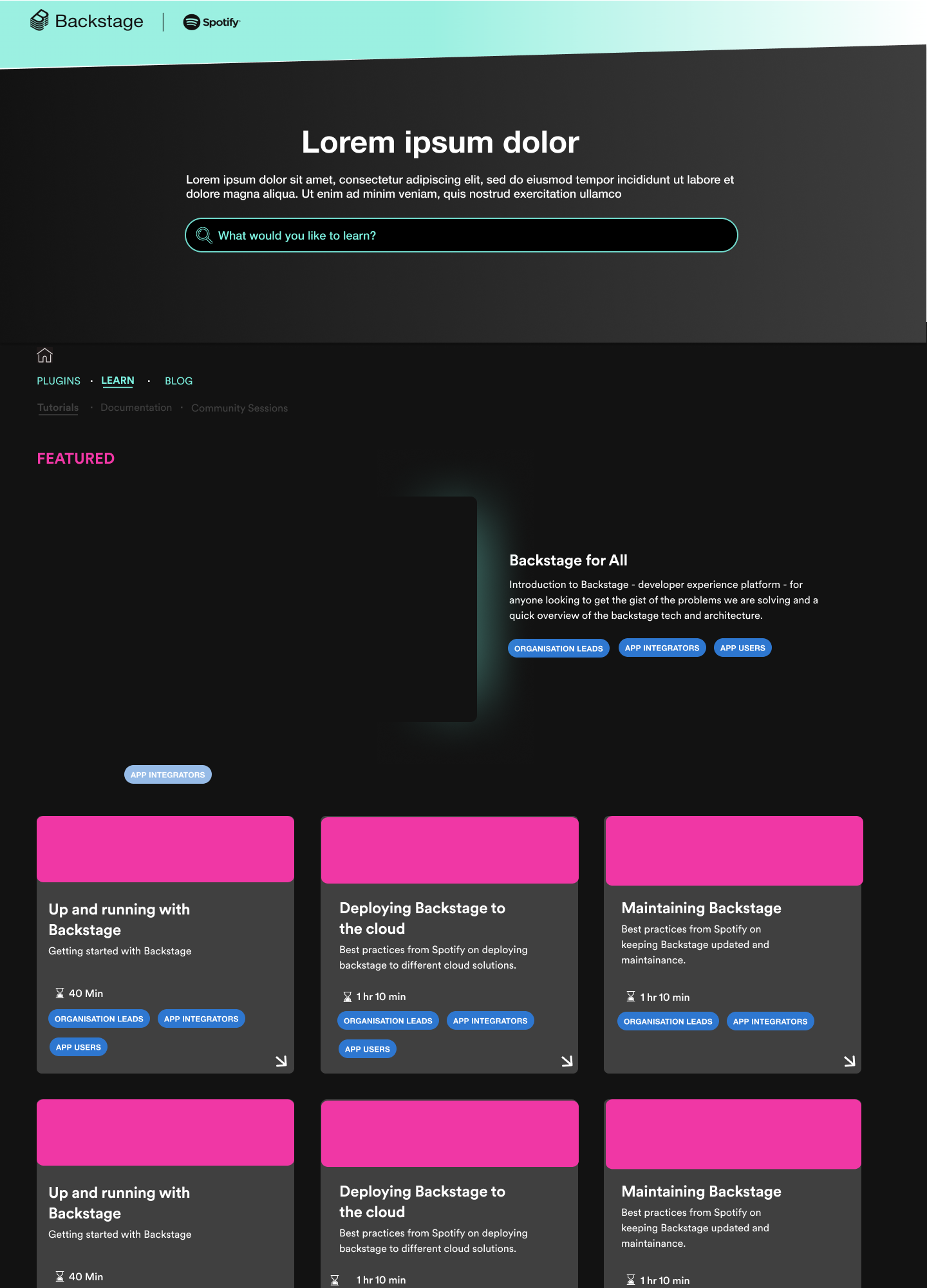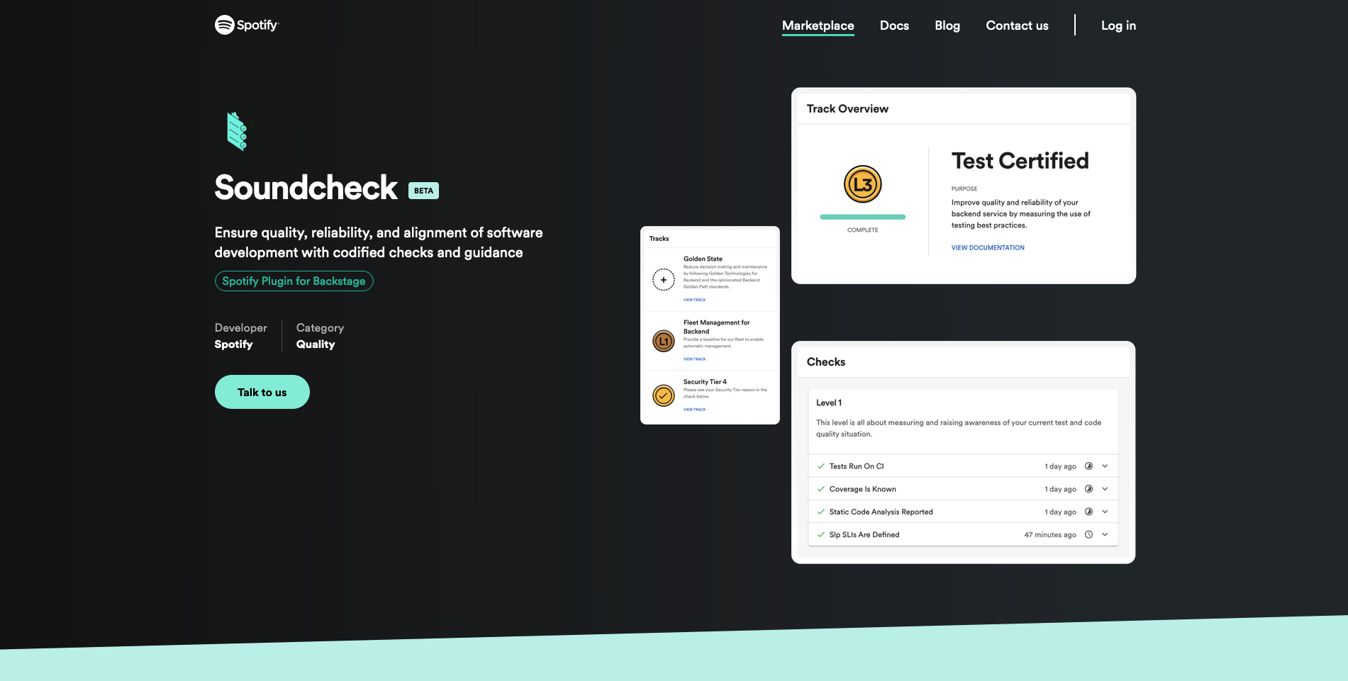 Backstage.Spotify.com is the marketing website for the open platform, Backstage.io, created by Spotify